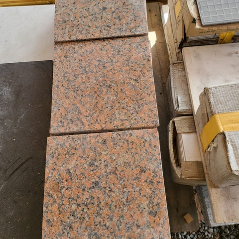 Grå granitplattor avsedda som trappsteg för utomhusbruk. Plattorna har grov yta som ger bra friktion. Passar för exempelvis entrétrappor, terrasser eller andra mark- och trappkonstruktioner där slitstarkt naturstenmaterial Levereras som rektangulära skivor mått på plattor