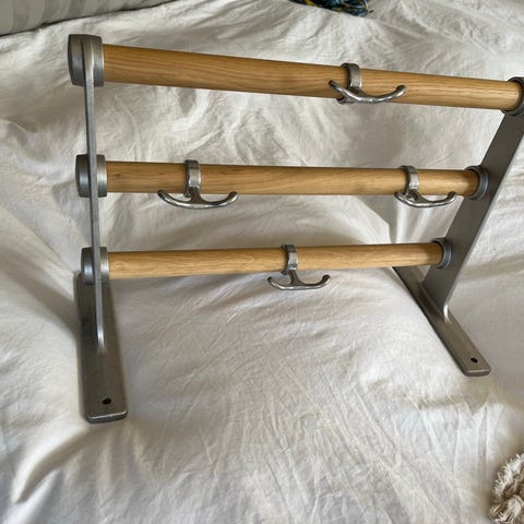 Rikt ornamenterade gavlar i forn nordisk stil med stiliserade växter/grenar. Åtta dubbla ankarkrokar. Längd 115 cm, men går lätt att korta ner den till önskad längd!