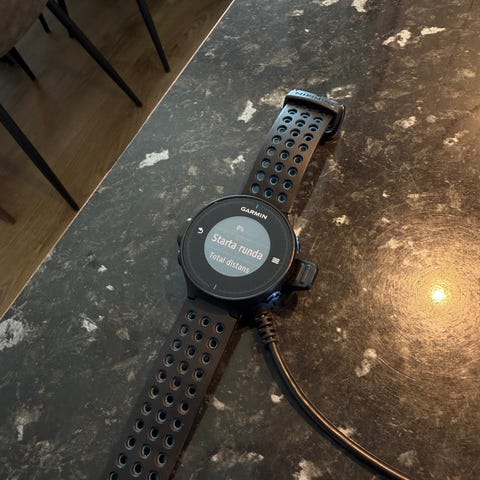 Medföljer: USB-laddkabel med Garmins egen kontakt för laddning och synkronisering mot dator eller kompatibla enheter.