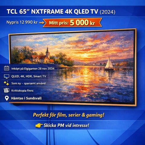 Säljer en LG 55-tummare från den senaste 2024-serien. TV:n är använd men i absolut nyskick. Kvitto finns naturligtvis kvar.
