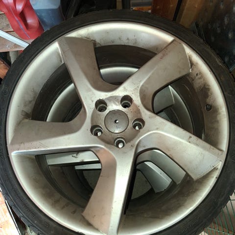Bild 1. 235/35-19 ET38 i okej skick. Gummi i sämre skick. Har haft de på en S124 Mercedes. 4000SEK