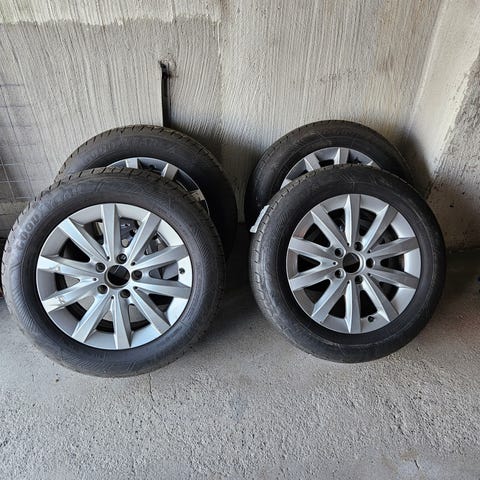 Bild 3. 215/55-16 ET okänt. Mercedes originalfälgar. Däck dåliga. Suttit på en W210 AVANTGARDE. 3000SEK.