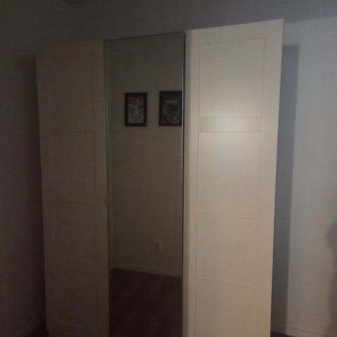 Säljer denna: https://www.ikea.com/se/sv/p/billy-oxberg-bokhylla-m-oeverhylla-panel-vdoerrar-vit-s29287346/#content