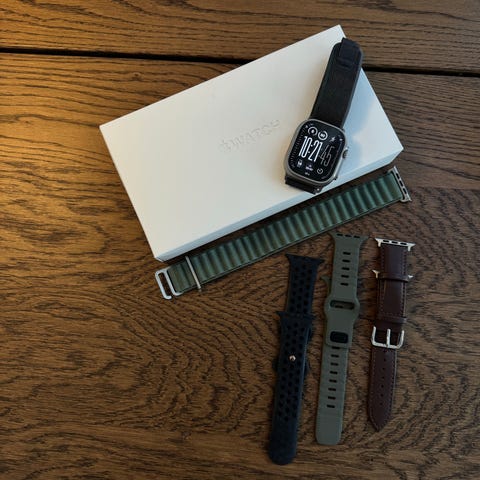 Smartklocka med rektangulär urtavla och silver metallarmband i meshstil. Klockan har pekskärm och sidoknapp. Armbandet är justerbart och passar handled i vuxenstorlek (L). Lämplig för vardagsanvändning och träning.