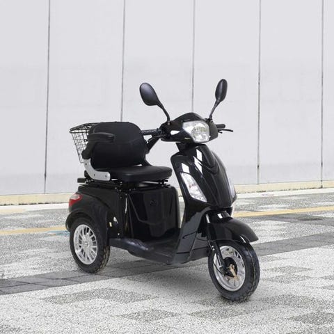 Eloped vit. Utmärkt skick. Helt nya batterier. Förvarad inomhus, endast körd sommartid. Utrustad med svart sits med armstöd och nackstöd, frontkorg, backspeglar och fotplatta med halkskydd. Drivs med elmotor och är avsedd för sittande förare.