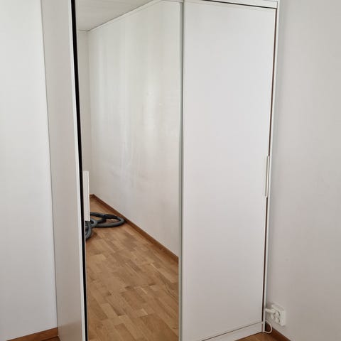 IKEA garderob vit med svarta kanter och förvaring