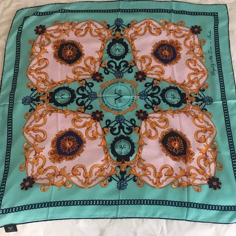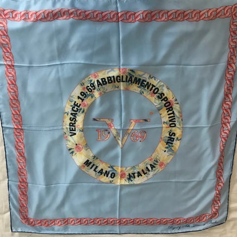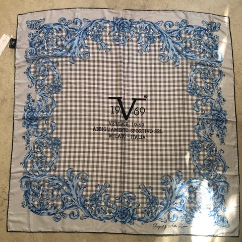 Scarf, unused. The brand is not the same as Versace, it was created by another designer Alessandro Versace, the brand has now changed name to 19V69 Italia.