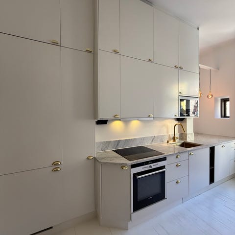 Säljer ett komplett kök från IKEA inklusive kyl/frys, ugn, spishäll, fläkt, diskho och bänkskiva. Diskmaskinen är från Electrolux. Säljes pga renovering.