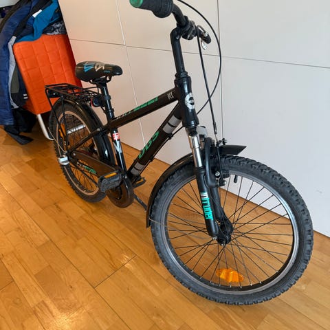DBS barncykel med 20" hjul. Cykeln är utrustad med 3 växlar som manövreras via vridreglage på styret. Cykeln har fotbroms. Sadel är justerbar i höjd för att kunna anpassas efter barnets längd. Cykeln har reflexer för ökad synlighet i trafiken. Tyvärr har cykelstödet gått sönder, men i övrigt fint skick. Pris 600 kr