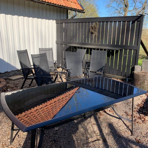 Trädgårdsmöbler bord med 8 stolar och 2 pallar