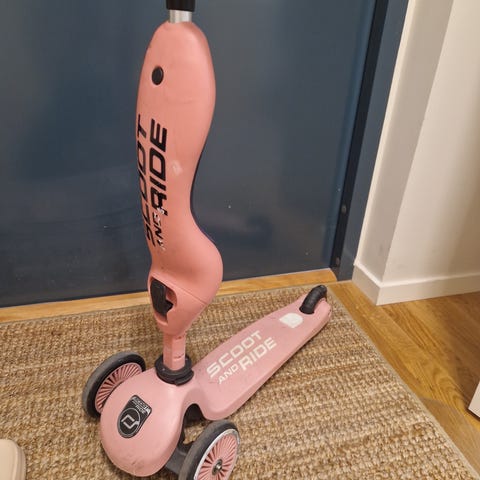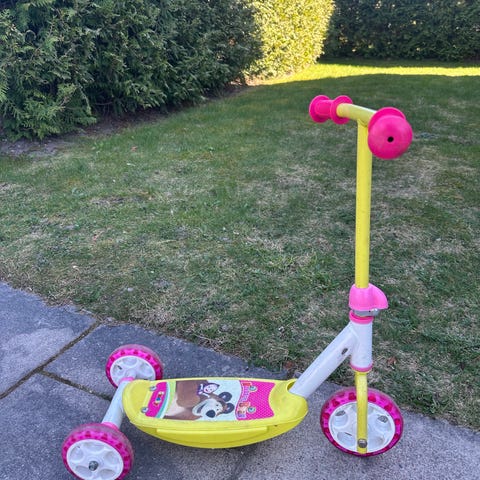 Maxi micro sparkcykel sparkcykel. Modellen har tre hjul med två hjul fram och ett hjul bak för ökad stabilitet. Kommer med tre olika styren för olika åldrar på barnet. Använt skick, men funkar som den ska!