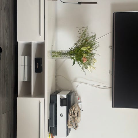 Praktisk fin ribbad hylla under skivan för exempelvis tidningar eller böcker.