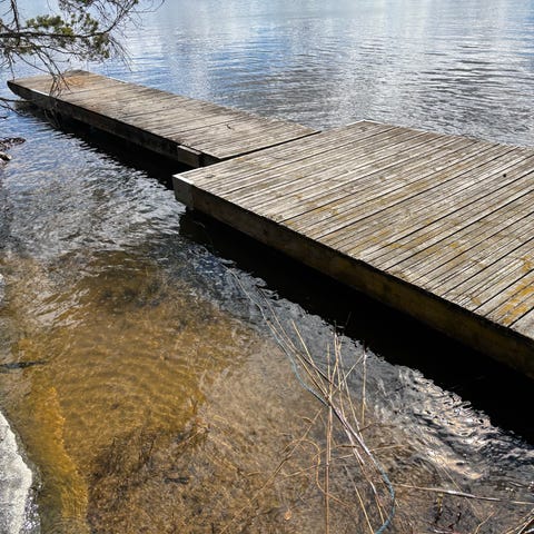 Plastfat och fästen till brygga