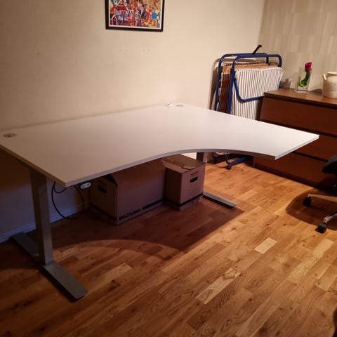 Skrivbord höj- och sänkbart med eluttag vit