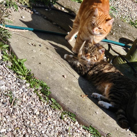 Vi säljer 2 honkatter somär kelkga och vana vid att både vara ute och inne! Båda är kastrerade och chippade. Den ena är en vanlig bondkatt med flerfärgad päls och den andra en svart brittisk korthårig.