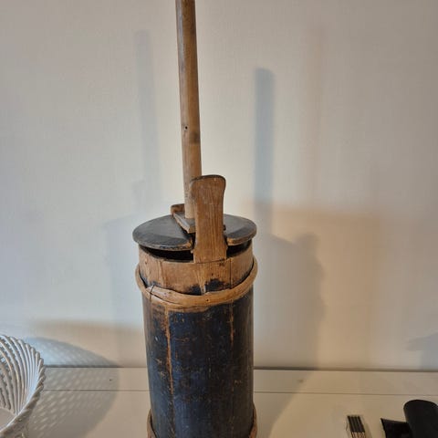 Gammal smörkärna, en vacker prydnad för ditt torp eller för dig som vill göra ditt egna smör i den kommande energikrisen..