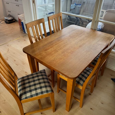 Matbord + 4 stolar i massiv ek