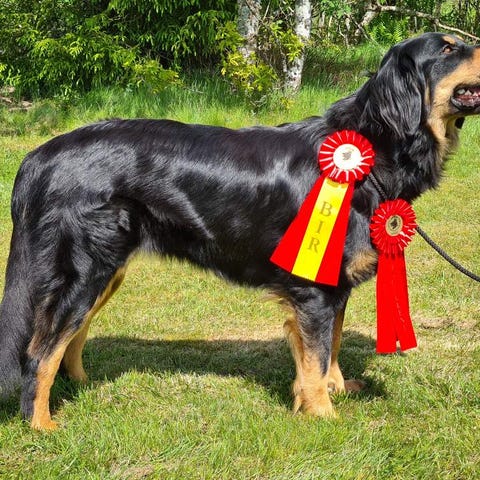Envy är van vid barn och andra hundar. Ingen problemhund.