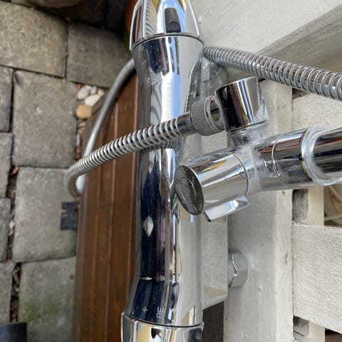 Tackduschset Gustavsberg Estetic Square 160cc svart med badkarspip. mått finns på bilden.