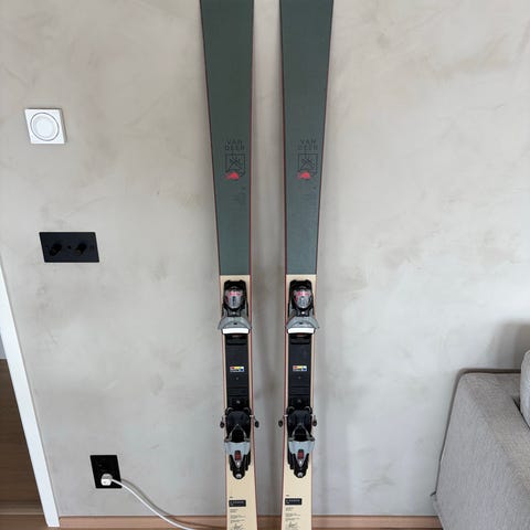 Skidorna är i bra begagnat skick. Belag och kanter är överlag i fint skick, men belaget har en del repor från användning, inget som påverkar åkningen. Det finns också kosmetiskt slitage på topsheeten, framför allt vid topparna och längs kanterna, vilket syns på bilderna. Inga större skador utöver normalt bruksslitage.