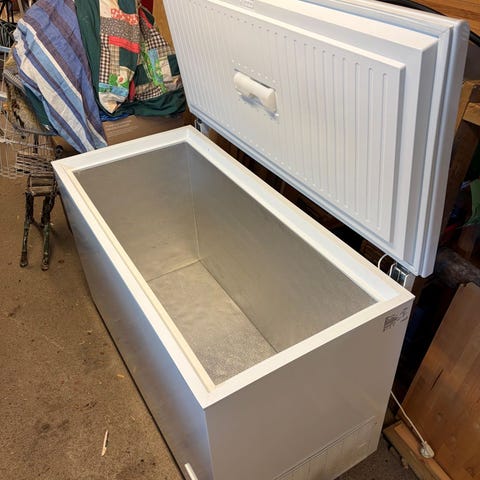 Electrolux frysbox i vit färg. Fristående modell med lock upptill och manuell temperaturreglering via vred på fronten. 500kr eller bud