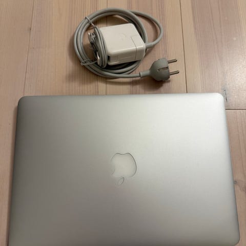 Apple MacBook Air laptop med 13-tums skärm i färgen guld. Tunn och lätt dator med bakbelyst tangentbord och stor styrplatta. Chassi i metall med gummifötter undertill. Mindre märken och repor syns på undersidan och vid hörn enligt bilder. Lämplig för vardagsbruk som surf, kontorsarbete och studier.