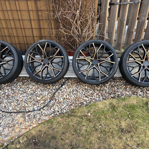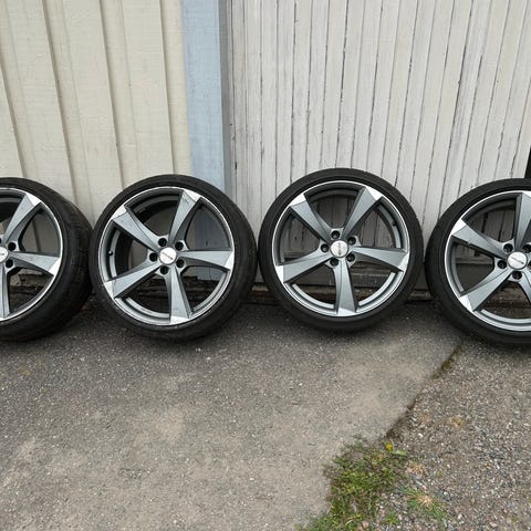 Jag säljer 4 st sommardäck med fälg med 25mm spacers, Dom har suttit på en volvo 240 tidigare