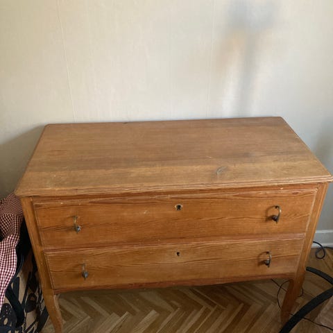 En trevlig och charmig byrå som är i bra skick, den har små tecken på slitage och mindre missfärgningar på blommönstret på insidan av lådorna. Vid intresse kan vi erbjuda utkörning för en liten peng. Hör av er om ni är intresserade!