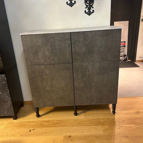En låda har dock fettfläckar i botten efter att dottern använt den som snackslåda en tid. Se foto. Vi har använt insatslådor från Ikea för att dölja, men fungerar lika bra med en filtduk.