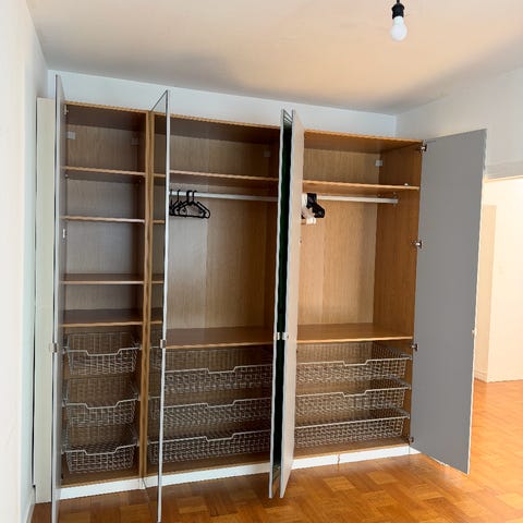 Elvarli förvaringssystem inköpt 2025. 206 brett och 216 högt. 6 lådor. 2 meter klädstång och 9 hyllor. Säljes pga flytt. Nypris 8600