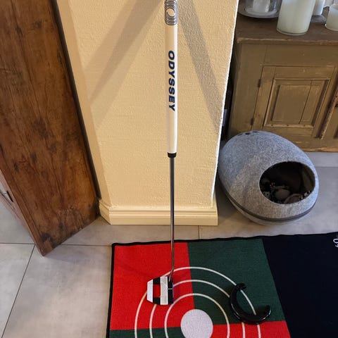 Odyssey Ai-One Jailbird Mini putter i svart och vitt. Mallet-huvud med svart skaft och nytt grepp. (Samma grepp som Scottie Scheffler använder)