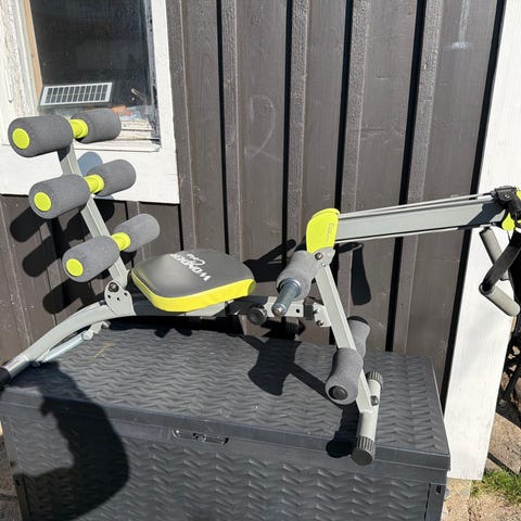 Maxfit träningsbänk i svart färg. Bänken har vadderad liggyta och ryggstöd med konstläderliknande överdrag samt metallram. Utrustad med stöd- och grepphandtag framtill och vadderade rullar för ben- eller armstöd. Lämplig för olika styrke- och hemmaträningsövningar där bänk behövs som stöd.