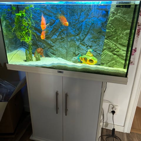 Juwel akvarium med vit möbel 120 L. Med Ljusramp. Ingår grus och någon växt om så önskas.