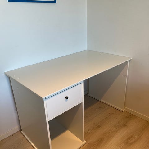 Ommålat grått skrivbord, troligtvis Jysk eller liknande. Färgen är lite avskavd på några få ställen annars i fint skick.
