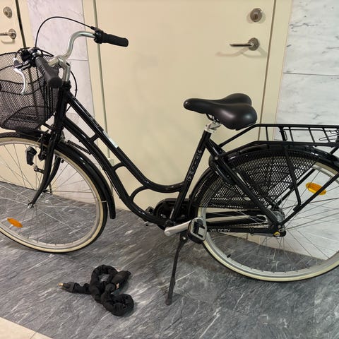 Säljer en svart Skeppshult damcykel, inköpt 2018. Klassisk, stabil och bekväm cykel som passar bra för vardagsbruk, pendling och ärenden i stan.
