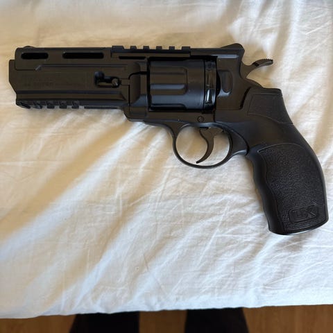 Jag säljer CO2 revolver vet inte mycket om den 4,5 mm rond kulor ingår alt som visar på bild pris 1000kr