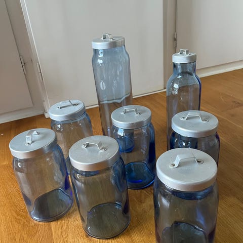 Fyra st vattenbehållare med tappkran från Ikea.
