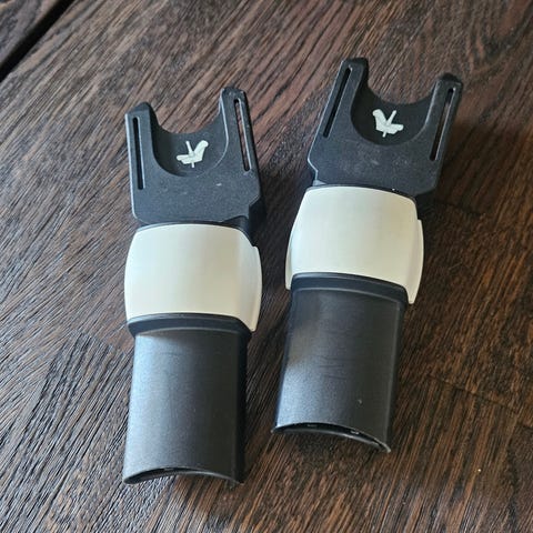 Bugaboo adapter för Maxi-Cosi babyskydd till barnvagn. Adaptrarna gör det möjligt att fästa ett kompatibelt Maxi-Cosi babyskydd direkt på en Bugaboo-barnvagn. Systemet är utformat som ett klicka-på- och ta-av-fäste mellan babyskyddet och vagnen. Levereras som ett par adaptrar enligt bilderna.