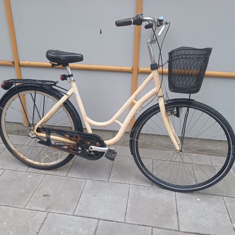 LOGAN Damcykel 28 tum med 3 växlar. Finns lås. Två stycken lampor som funkar bra