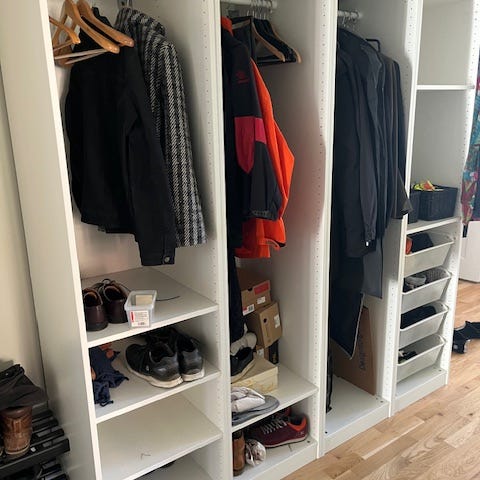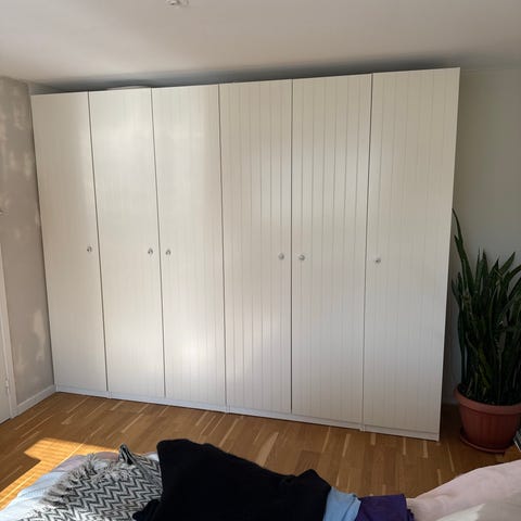 Fyra vita garderobsstommar i fint skick. 237 x 50 cm.