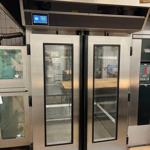 Electrolux ångugn i rostfritt stål. Ugnen är avsedd för storkök eller restaurangmiljö och har en glasdörr med handtag i metall. Frontpanelen har digital display och reglage för inställning av program och temperatur. Konstruktionen i rostfritt stål är anpassad för professionell användning och enkel rengöring. Ugnen kan användas för tillagning, varmhållning och ångning av olika typer av livsmedel i gastronomkärl eller plåtar, beroende på insats och tillbehör som används.