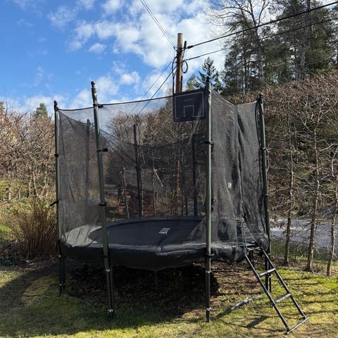 En väldigt bra stuttsmatta. andvänds inte längre på grund av att barnen har vuxit upp och andvänder sällan. Annars är det i väldigt bra skick för en använd stuttsmatta. den ör nästan som ny.