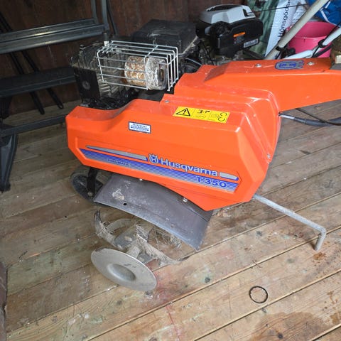 Mantis jordfräs 2 takt, bensindriven. Maskinen är avsedd för bearbetning av jord i trädgårdsland och rabatter. Den har roterande fräsknivar framtill och drivs av en bensinmotor med dragstart. På bilderna syns även extra tillbehör/knivar samt instruktionsmaterial. Lämplig för trädgårdsarbete som luckring, ogräsbearbetning och förberedelse av odlingsbäddar. Efter att ha stått ca 10år så startar den och går en kort stund tror förgasaren behöver en service.