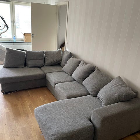 Nu säljer vi vår mycket välskötta soffa Friday från miomöbler köpt 2021. Färgen är brungrå. Soffan har en divan och en schäslong, två vanliga sittdynor och två nackkuddar. Friday är en rymlig soffa med bra komfort och lite högre ryggstöd. Soffans kuddar och dynor har avtagbara klädslar. Soffan har inga defekter och är nytvättad inför försäljning. Vi säljer soffan pga behov av en mindre soffa. Vi har ett djurfritt hem då allergi finns. Vänligen respektera priset i annonsen. Mått finner ni under annonsens bilder. Nypris 19500kr. Vårt pris 7500kr. Vi tar endast Swish.
