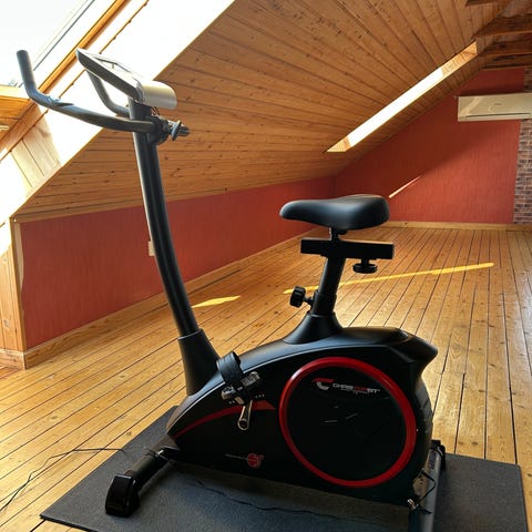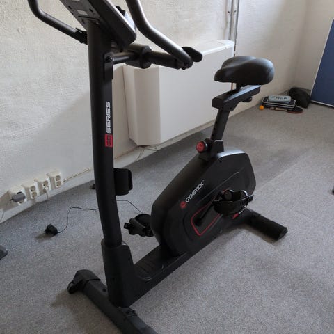 Christopeit AL 2 motionscykel i svart med röda detaljer. Utrustad med träningsdator med display för bland annat tid, hastighet, distans och uppskattad kaloriförbrukning. Justerbart säte och styre för anpassning till användarens längd. Pedaler med remmar för stabil fotplacering. Levereras med bruksanvisning enligt bild.