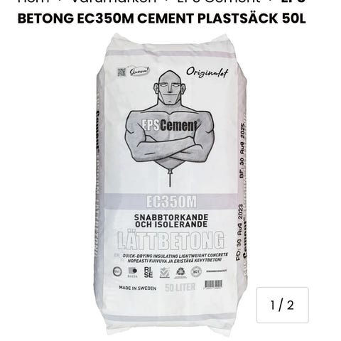 EPS Cement lättbetong i säck om 50 liter, vit. Produkten är en lättbetongblandning avsedd för gjutning, utfyllnad och utjämning där låg vikt önskas. Levereras i plastsäck med tryckt bruksanvisning och teknisk information på förpackningen. Lämplig för användning vid olika bygg- och renoveringsarbeten inomhus och utomhus enligt anvisningarna på säcken.