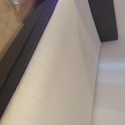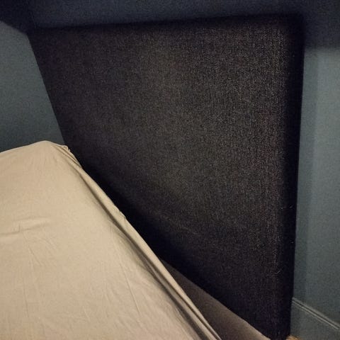 Katt och hund har sovit på den. Katten har klöst på den i hörnet. Syns på bild.