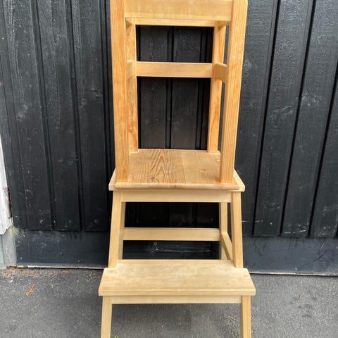 Synligt använd men fungerar bra. Perfekt för att låta barnen vara med och hjälpa till i köket, eller leka i diskhon medan du lagar mat. Plattformen har flera höjdlägen som kan justeras efter barnets längd. Säljes på grund av flytt.