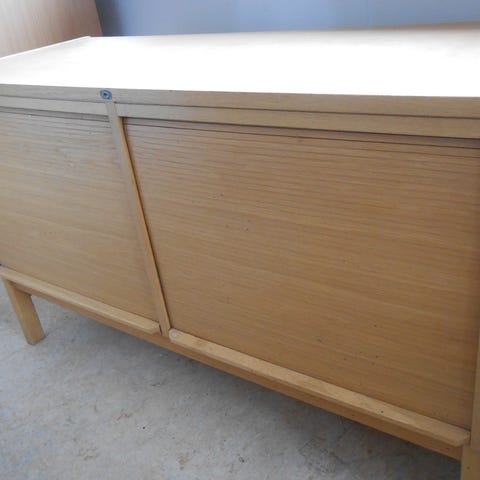 Förvaringsskåp på hjul i bok. Skåpen har flera hyllplan invändigt och jalusi som kan dras ner. Bra för att slippa damm samt undvika att visa vad man har där. Ett av skåpen har en öppen överdel. Skåpen lämpar sig för förvaring av böcker, pärmar eller annat material i till exempel kontor, skola eller hobbyrum. Ytskikt i bok med neutralt utseende som passar i många miljöer.