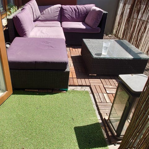 Passar uteplats, altan eller trädgård som sittgrupp för flera personer.